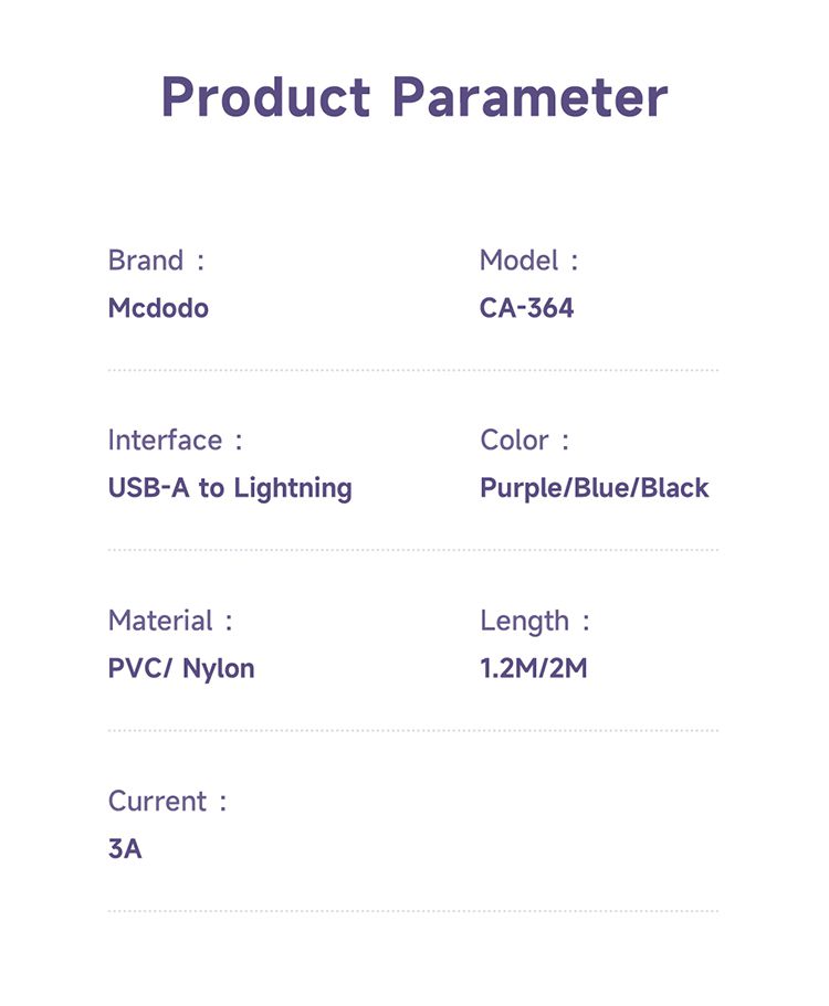 کابل تبدیل USB به لایتنینگ مک دودو مدل CA-3640 طول 1.2 متر